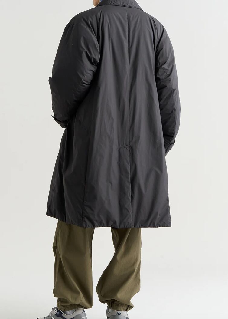 後ろ身頃にはセンターベンツを入れ、足さばきを妨げないつくりに。スーツやセットアップにも自然に馴染むので、通勤・出張などビジネスシーンに最適です。袖口にはサイズ調整ができるタブを備え、風の侵入を防いで保温性を高めています。