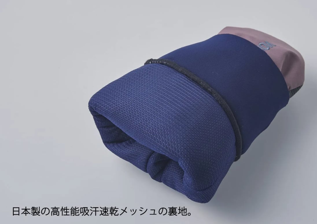 ・ 日本製の高性能吸汗速乾メッシュの裏地。