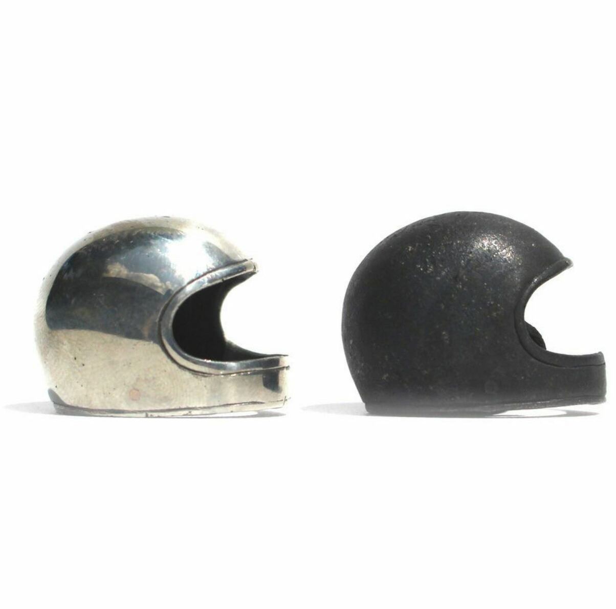 ビンテージヘルメット型キーリングです。燻銀仕上げのブラック、鏡面仕上げのシルバーの2色展開。