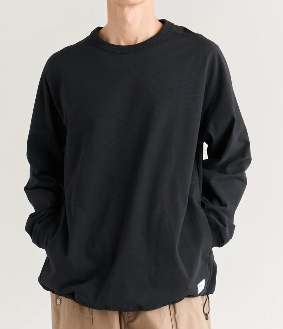 シルエットを変えて楽しめるロングスリーブティー。ショートパンツ、ロングパンツなど合わせるパンツによって、裾にドローコードをでシルエットを変えて、コーディネートを楽しんでいただけます。