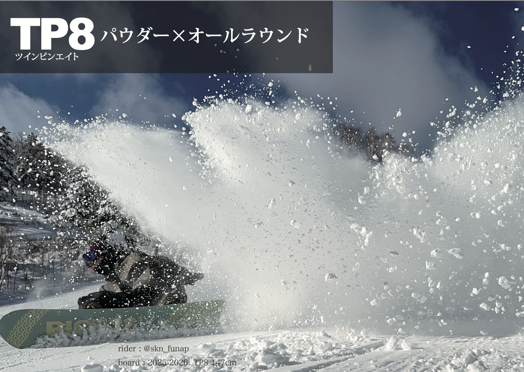 TP8はツインチップでありながら、パウダーボードとしての性能をしっかり備えたオールラウンドモデル。