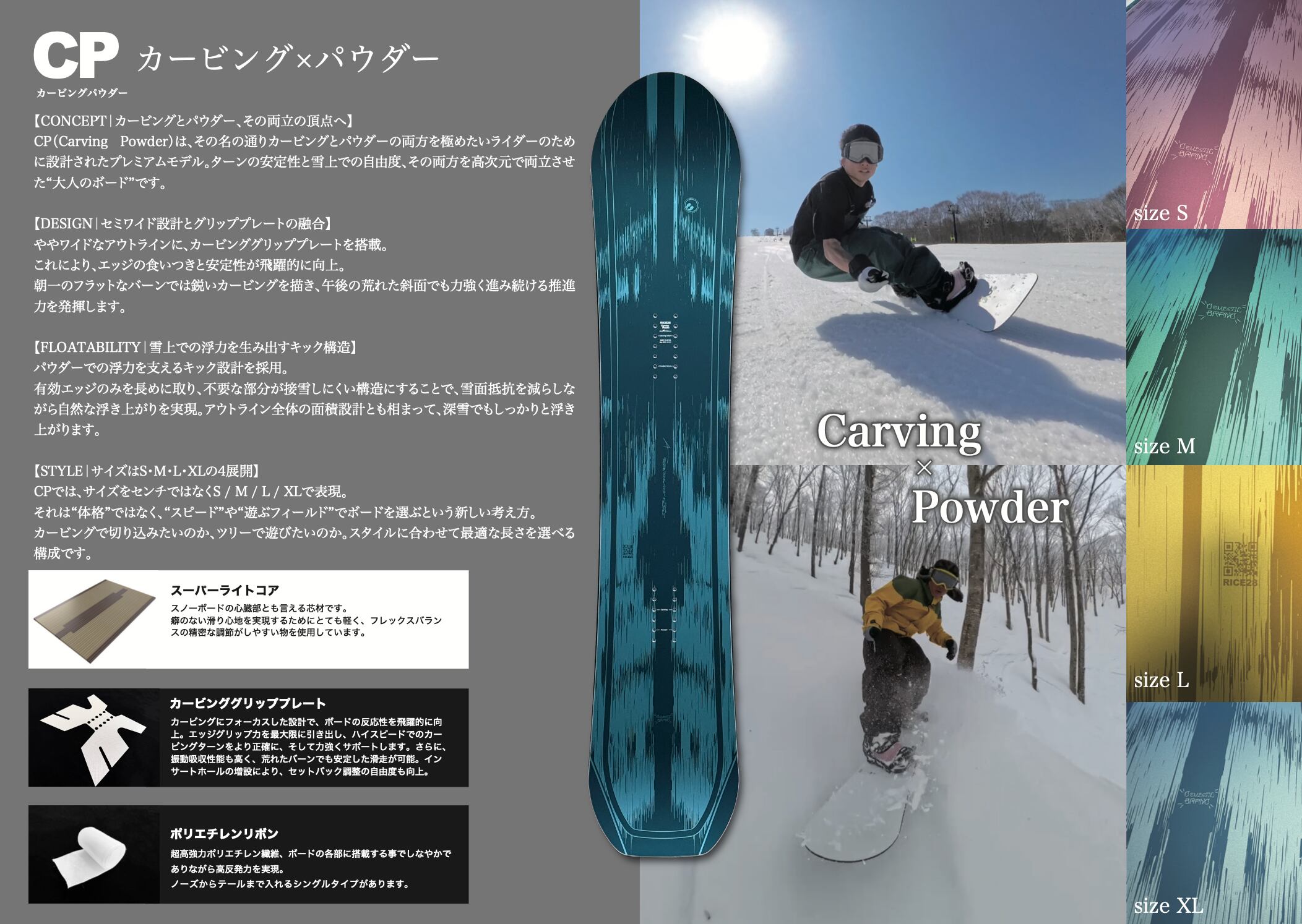 CP(Carving Powder)は、その名の通りカービングとパウダーの両方を極めたいライダーのため