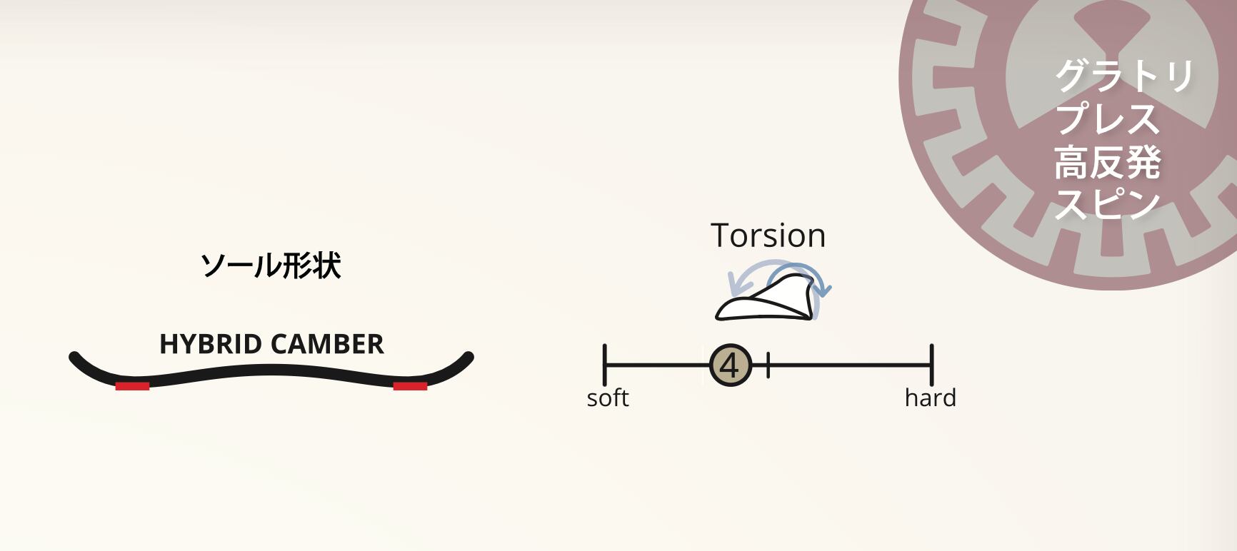 トリックに欠かせないトーションの使いやすさやノーズテールの絶妙なフレックスなど全てのバランスが究極に最適化され、プレス、弾