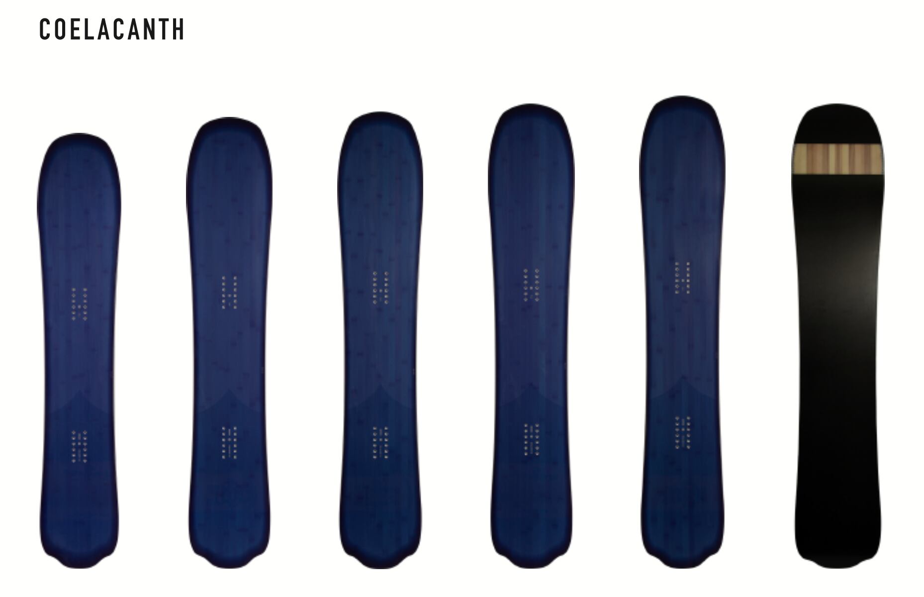 SplitboardのCatamaran seriesでガイド、ライダー、ショップオーナー、ユーザーと多方面から好評を博しているスプリットボードCatamaran-ACシリーズ。スプリットボードとは思えないほどのハイパフォーマンスに各方面からACのソリッドボードの要望を多くいただいておりました。25/25シーズン多くの声に応えてソリッドボード「Coelacanth」としてラインナップ。148,155,158,161cmに加え26/27モデルより152cmがラインナップに加わり5サイズ展開。レディースから大柄なライダークラスまで網羅するサイズ展開。ウッドコアにはCruiserやDraft P.A.Cモデル、Flying-V P.A.Cモデルで実績を積んだP.A.C core (Power arch carbon)を採用。Fiberglassには反発性に優れたMighty glass2をチョイスしました。P.A.Cコアの採用により、ダイレクトで高いホールド性を生み出します。切れ味鋭いハイパフォーマンスモデルとしてTerrain seriesにラインナップされました。148cm,152cm,155cmはレディースライダーやフリースタイラーのトリッキーなライディングを考慮しレスポンスを維持したままミッドソフトフレックスに、踏み込むほどに瞬時に反応するレスポンスとP.A.C.特有の反発力が軽快なリズムを生み出します。158cm,161cmはより大きなバーンで安定したパフォーマンスを発揮させるためにミッドフレックスに仕上げました。ボトム形状はパウダーでの取り回しに最適なアーリーライズロッカーノーズを採用、キャンバーはパウダーライディング時にも抵抗になりにくく、尚且つカービング時にしっかりとグリップし、フリースタイラーのライディングスタイルにも応える4mmキャンバーを採用しました。ゲレンデでのカービングからキッカー、ナチュラルヒットからウォールライディング、ビッグバーンでのパウダーライディングまで全てを網羅するマウンテンフリースタイルボードです。