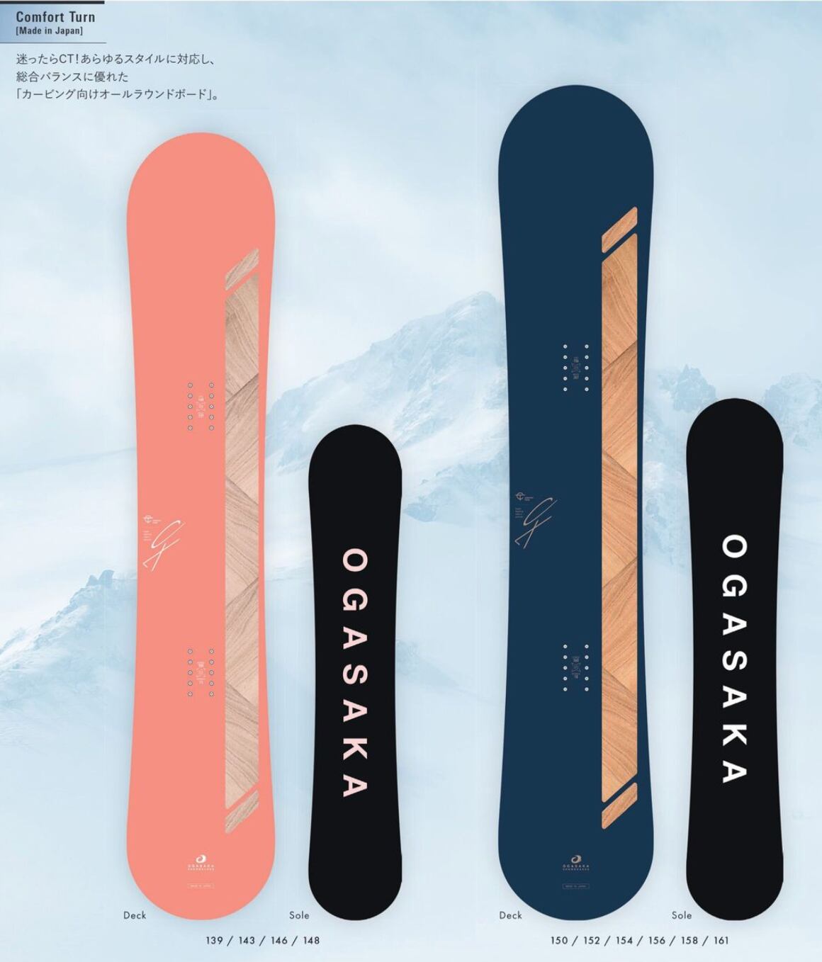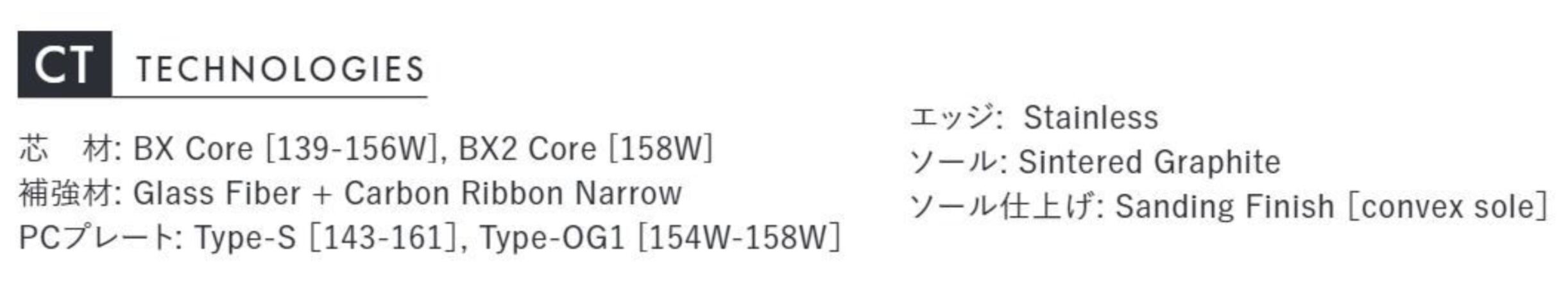 「CT」は、「迷ったらCT」というほどOGASAKA SNOWBOARDS の中で最も人気の高いモデルです。ラウンド形状、デイレクショナル、キャンバー構造のオーソドックスなフリースタイルボードで、カービングを楽しみたいという方に広く選ばれています。