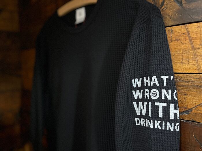 左腕に「What's wrong with drinking.」