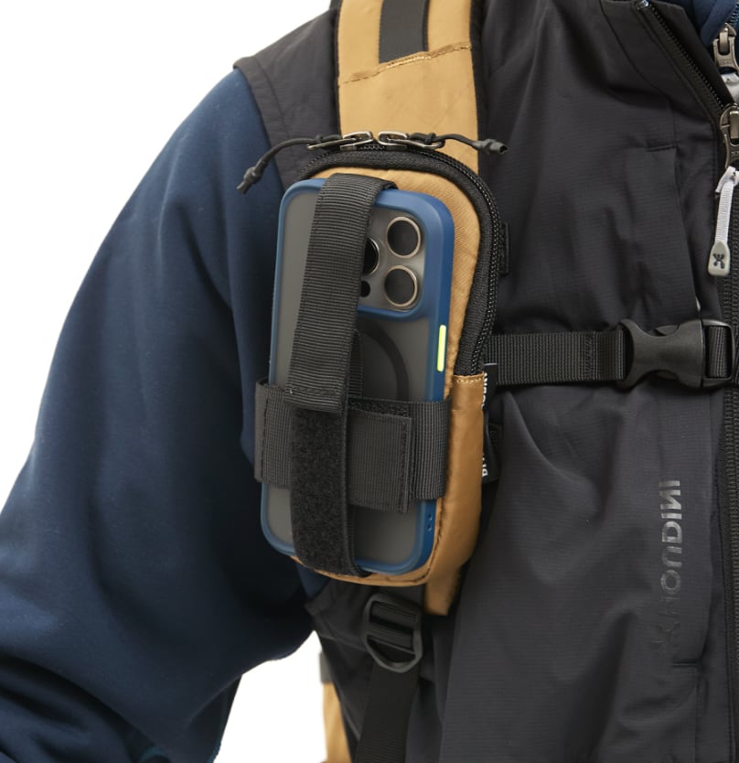 ※外付けホルダーの問題ではありませんが、バックカントリーなど雪山でのビーコン携帯時は、スマートフォンや無線機などの通信機器及び金属機器が電波干渉の原因となる場合がございます。雪崩の危険性が少しでもある状況の場合は電子機器はザックの中にしまう事をお勧めします。